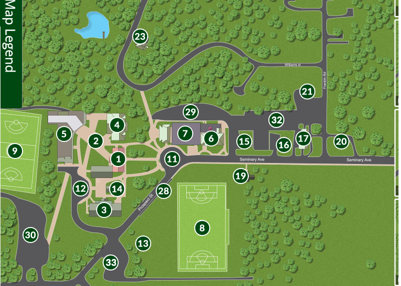 4、学校设施:该校的希尔登农场教育资源包括:农场、森林、湿地和草地生态系统;花园、牧场、畜牧设施和一个专用的BBA花园;最先进的教学温室。校园由几栋建筑组成,占地约50英亩,包括神学院大楼、E.H .亨利体育教育中心、莱利艺术中心、史密斯科学和通信中心、原校长的房子(现在作为医疗服务的行政大楼)、罗兰中心、创始人大厅和BBA木工车间所在的拉森大厅。此外,还有三个运动场、一个天文台和国际学生宿舍(小型家庭式“宿舍”)。