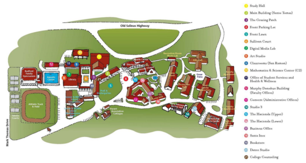 【学校设施】《建筑文摘》评论圣卡塔利娜是加州最美丽的私立高中,校园为西班牙建筑风格,校内有数学科学中心、电子媒体实验室、舞蹈室、书店、宿舍等等;