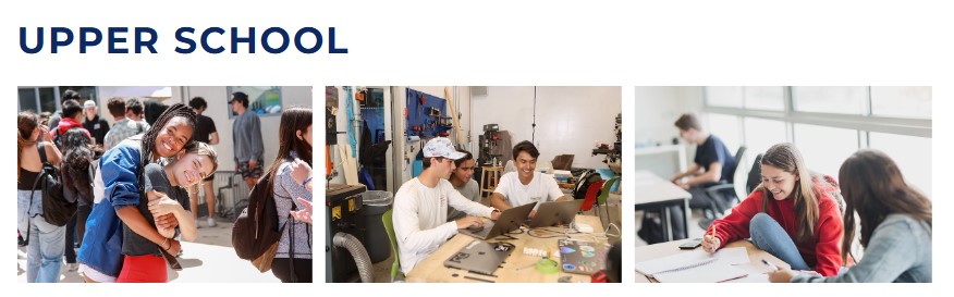 5、升学指导完善:学校老师会定期与学生和家长会面,举办年级信息聚会、每周交流、论文研讨会、大学博览会等活动。每年秋季邀请超过200位大学招生代表来校交流,为学生提供丰富的升学信息。学校的毕业生进入了众多知名大学和院校,包括常春藤盟校以及斯坦福大学、麻省理工学院、加利福尼亚大学洛杉矶分校等顶级院校。