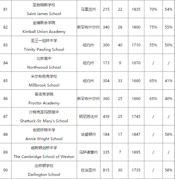美国寄宿高中的排名