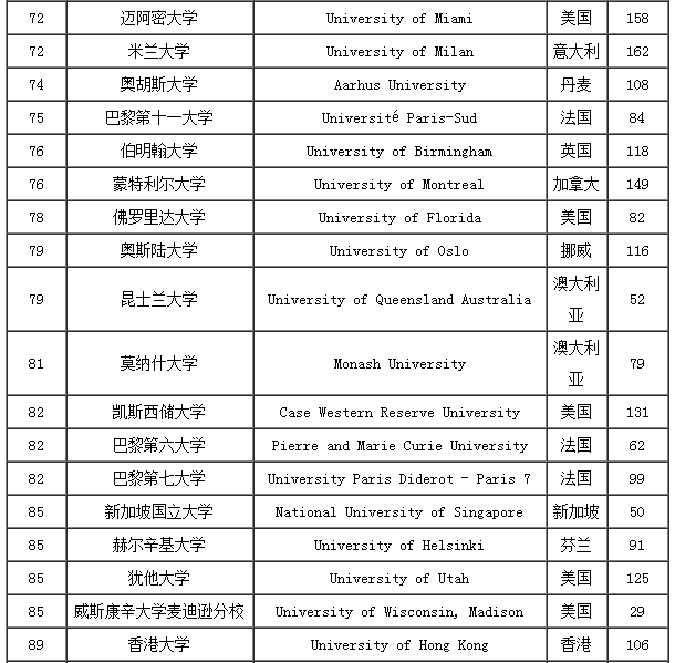 2017USNEWS临床医学专业世界大学排名TOP100