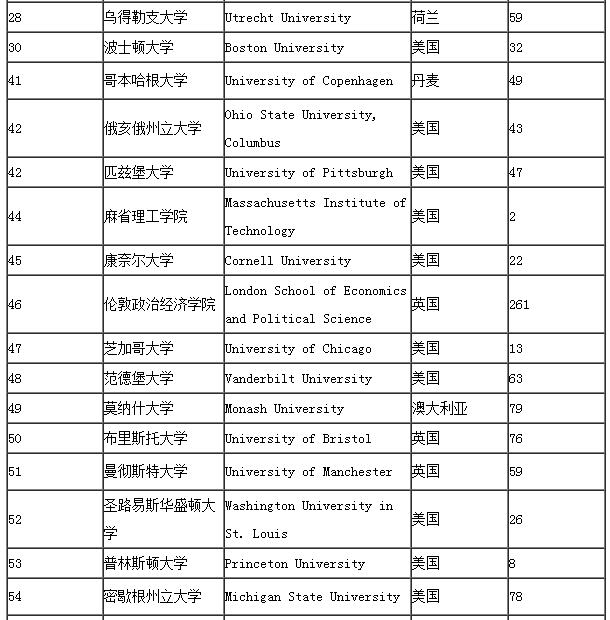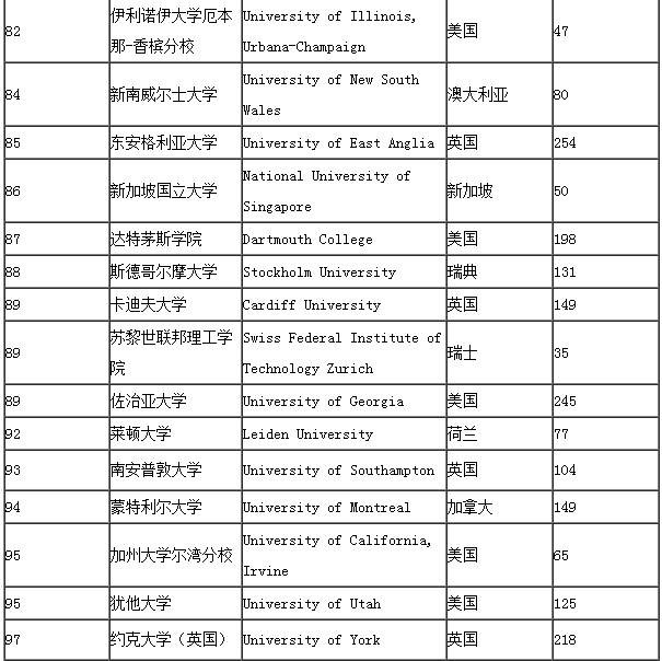 2017USNEWS社会学和公共卫生专业世界大学排名TOP100