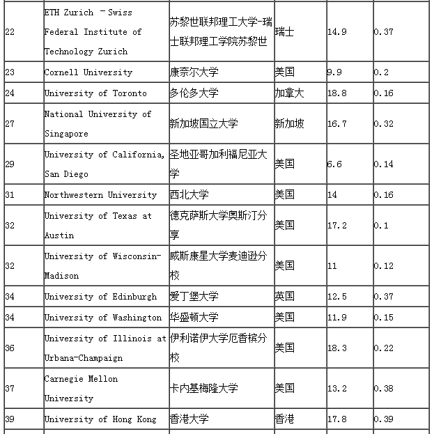 2017美国建筑学专业世界大学排名
