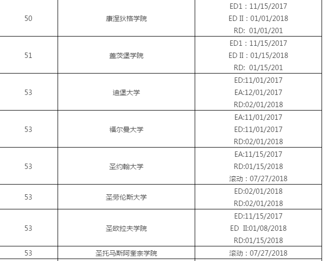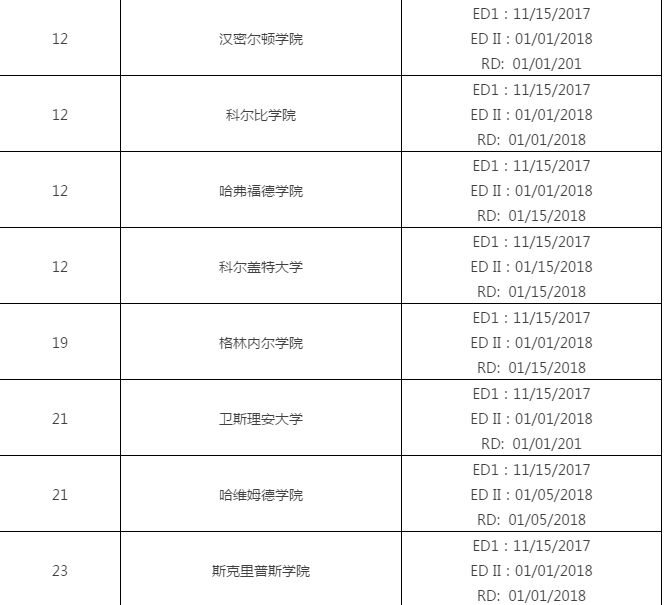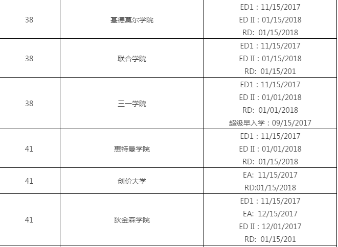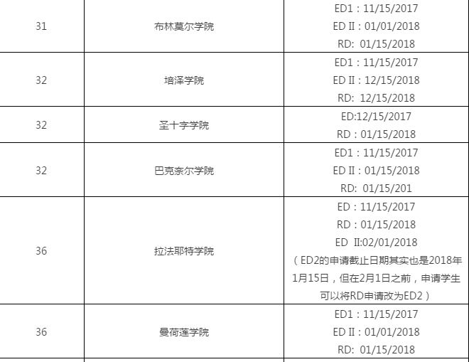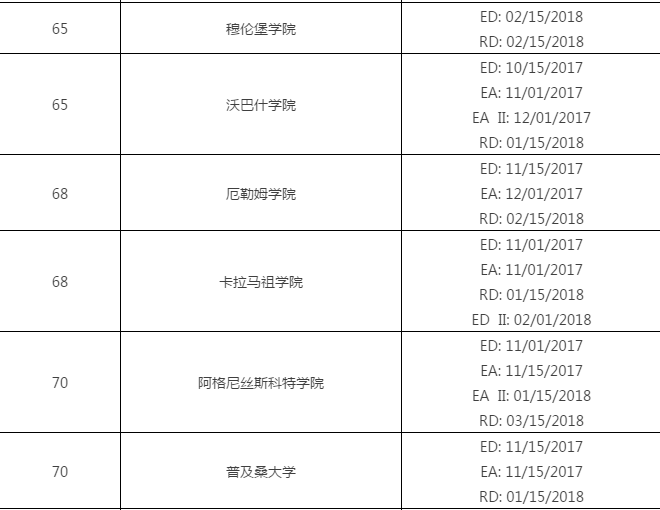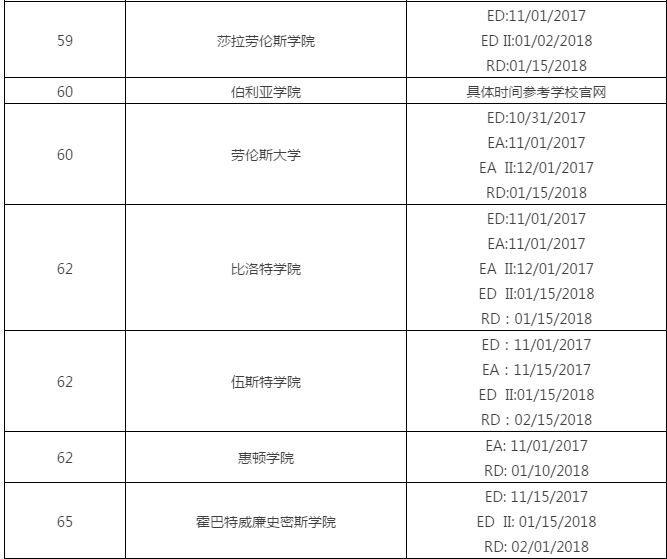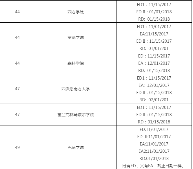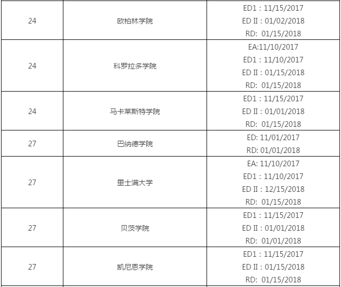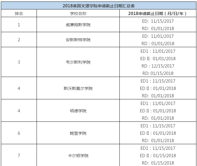 2018美国文理学院申请截止日期汇总