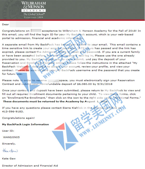 恭喜C同学成功补录优质寄宿 Wilbraham & Monson Academy