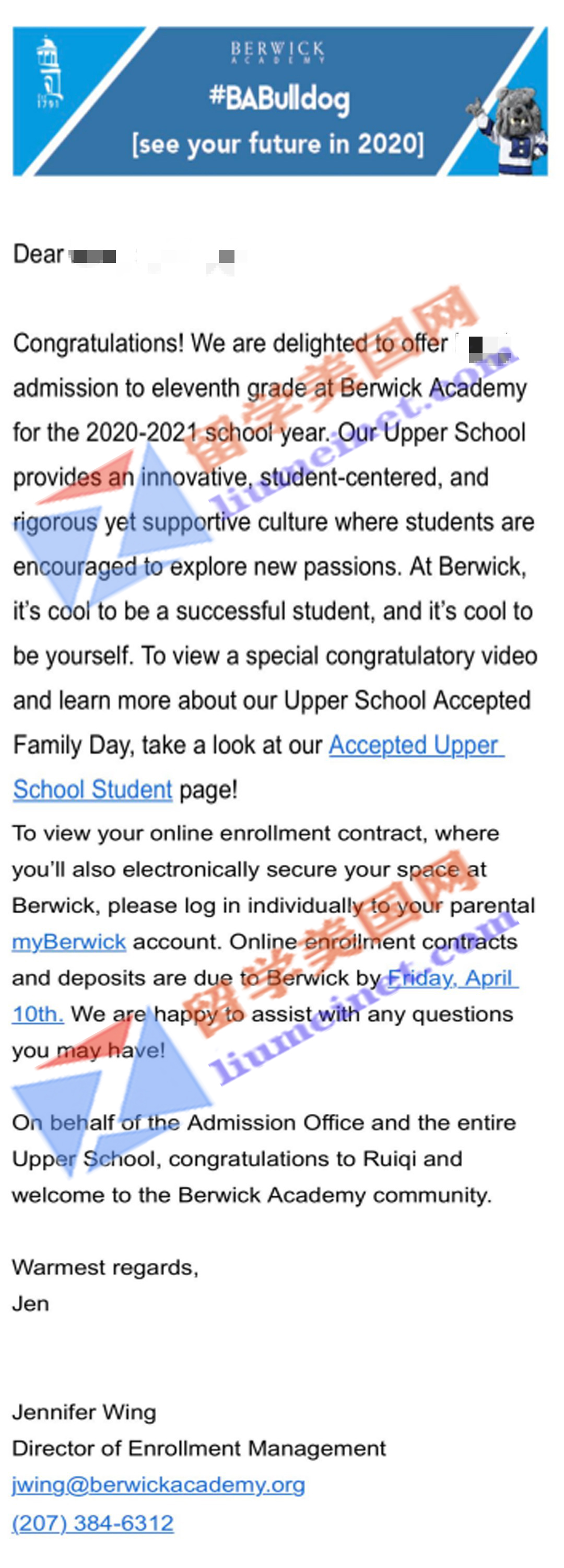 随着发榜日的发布,留美网许多学生都收到了心仪学校的offer,接下来小编每天都会给大家分享录取offer展示!
