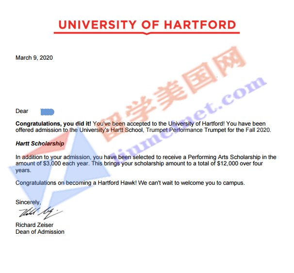 恭喜留美网L同学斩获University of Hartford(哈特福德大学)的录取offer!