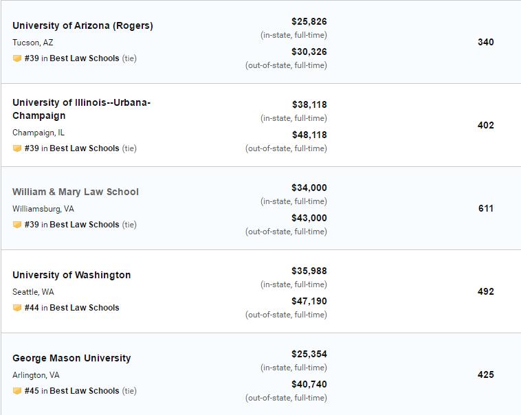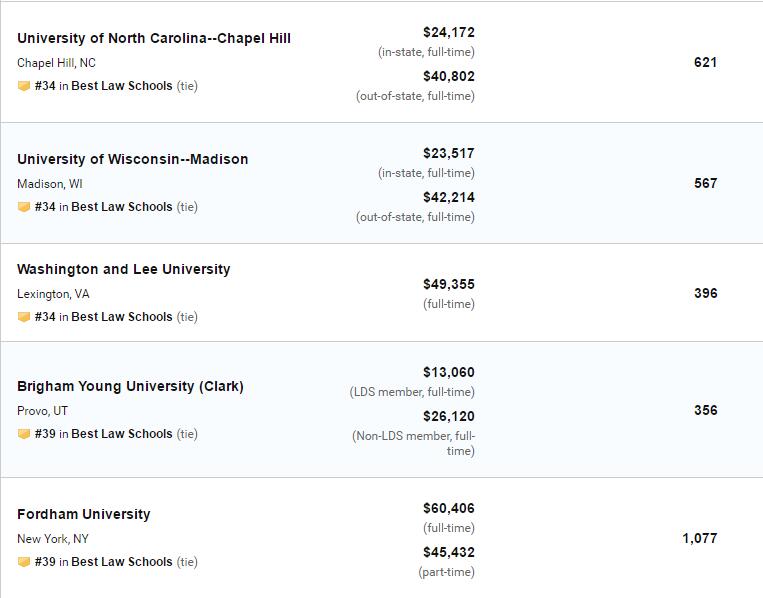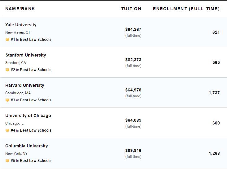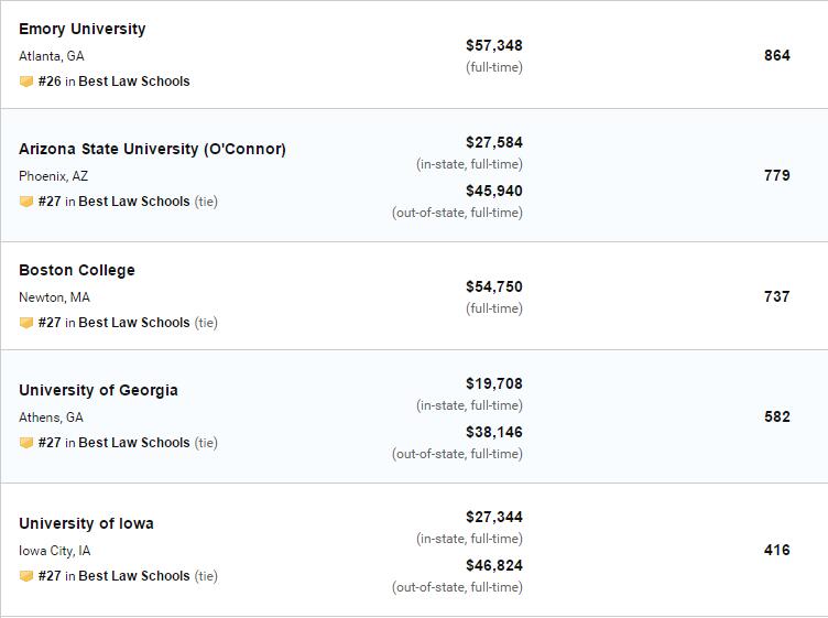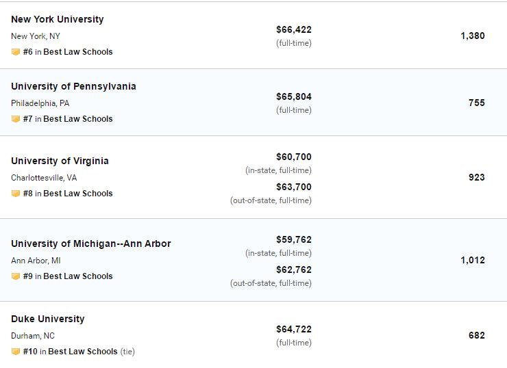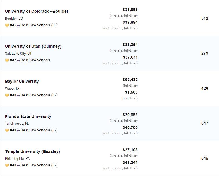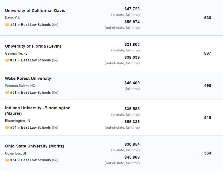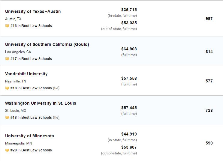 2020年US News美国大学法学院排名!