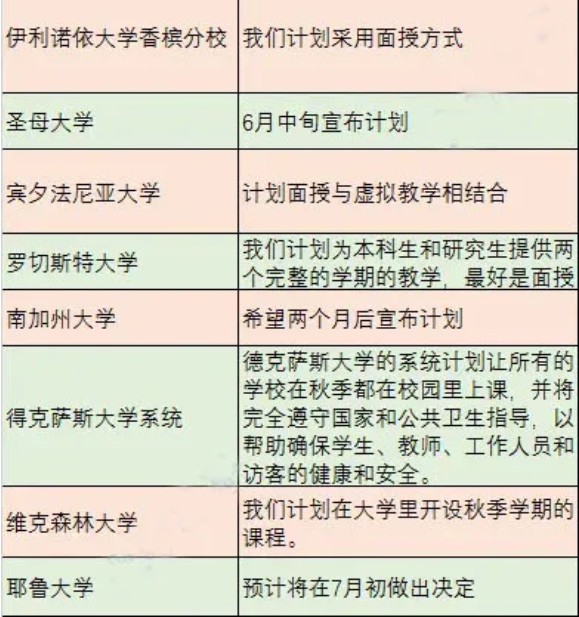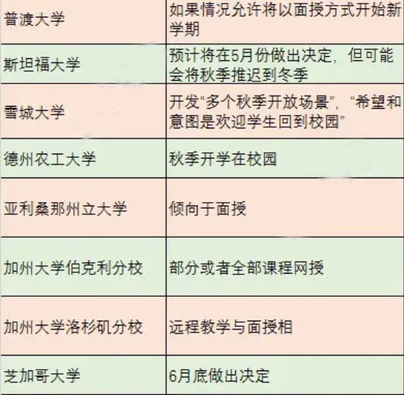 2020年秋季美国大学开学情况!