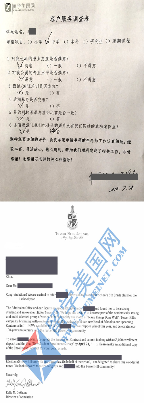 ML同学的满意评价表和费城顶级高中塔山中学录取offer展示 【学校考察详情】