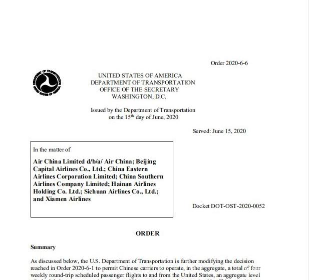 中美航班不但得到了中方的批准,美国交通部也在6月16日表示,将放宽中国航空公司的赴美航班数量,每周将允许4个航班执飞往返美国的航线,立即生效。为中美顺利通行搭建了桥梁,极大消除了海内外留学生和其家庭的恐慌心情。