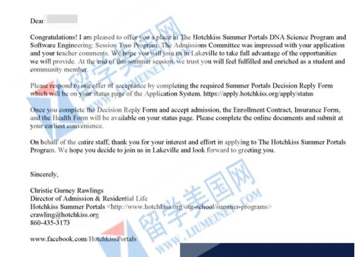 再传录取捷报!恭喜留美网H同学补录到Lawrence Academy(劳伦斯中学)!