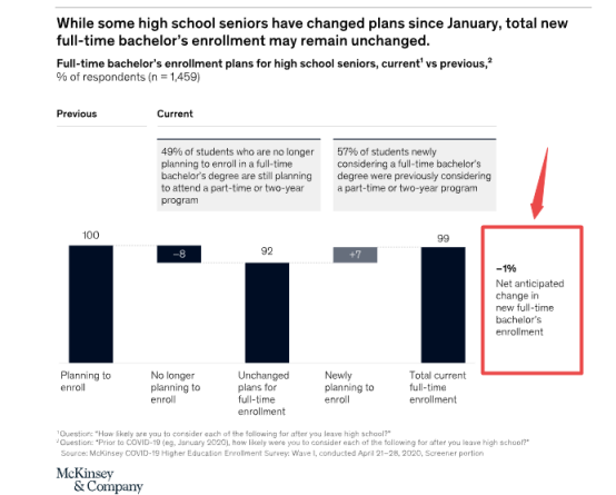 2020年留学的局面变得扑朔迷离。近期,麦肯锡公司发布了美国高等教育新生入学报告。