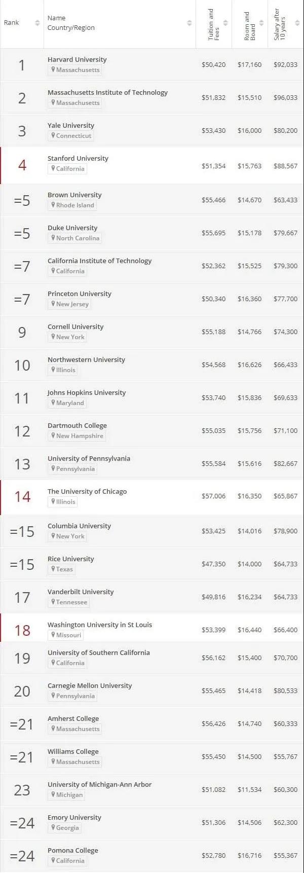 最近泰晤士THE&WSJ华尔街公布2021美国大学排名,他们是从哪个维度进行排名的呢?排名又发生了哪些变化呢?从数据可以看出,他们强调的是投资回报。