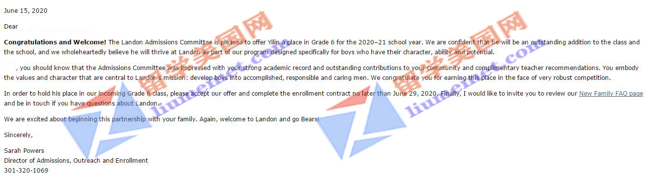 再传录取捷报!恭喜留美网H同学补录到Lawrence Academy(劳伦斯中学)!