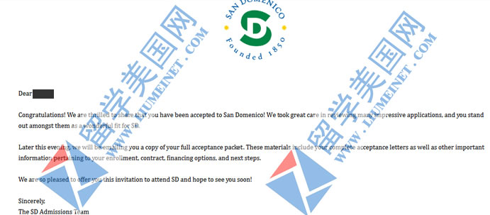 恭喜留美网古同学被圣多明尼哥中学录取offer展示~