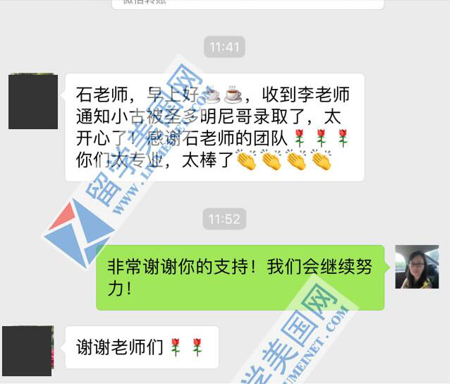 留美网古同学被圣多明尼哥中学录取展示~