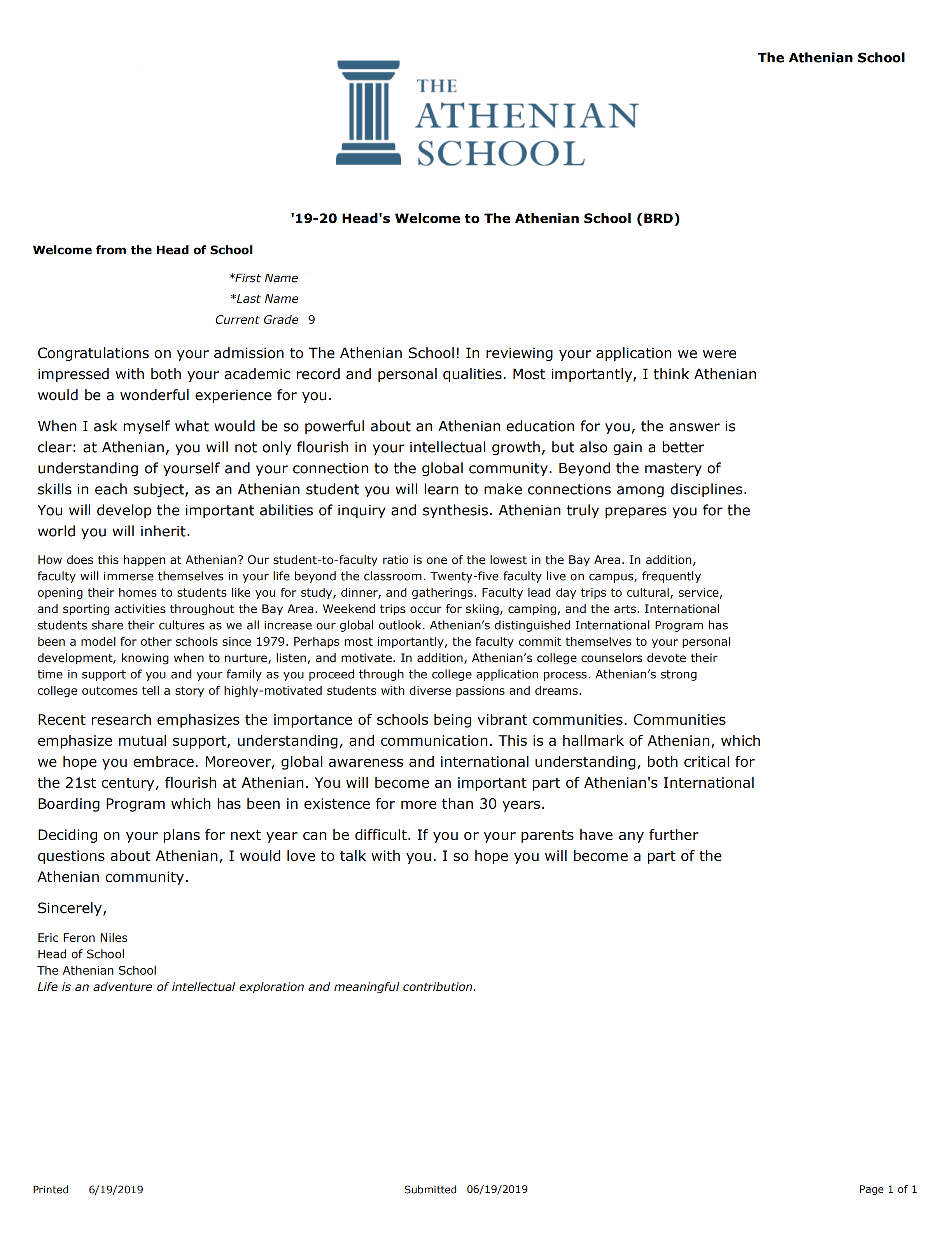 Athenian School成立于1965年,位于坐落在旧金山湾区,蒂阿波罗山脚下,离旧金山32英里。雅典娜学校非常注重于学生的全面发展,智力的开发,增强体质,品质,价值观,审美敏感度。学校师资非常卓越,69%已取得硕士或博士学位,毕业院校多为哥大,哈佛,西北,普林斯顿,斯坦福,耶鲁等美国著名高校。另外,学校非常注重人与自然的关系。