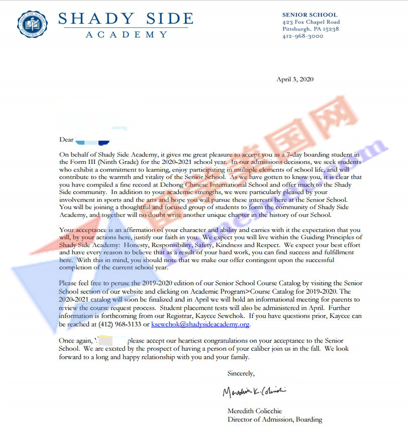 美国顶尖私立高中补录成功案例分享~