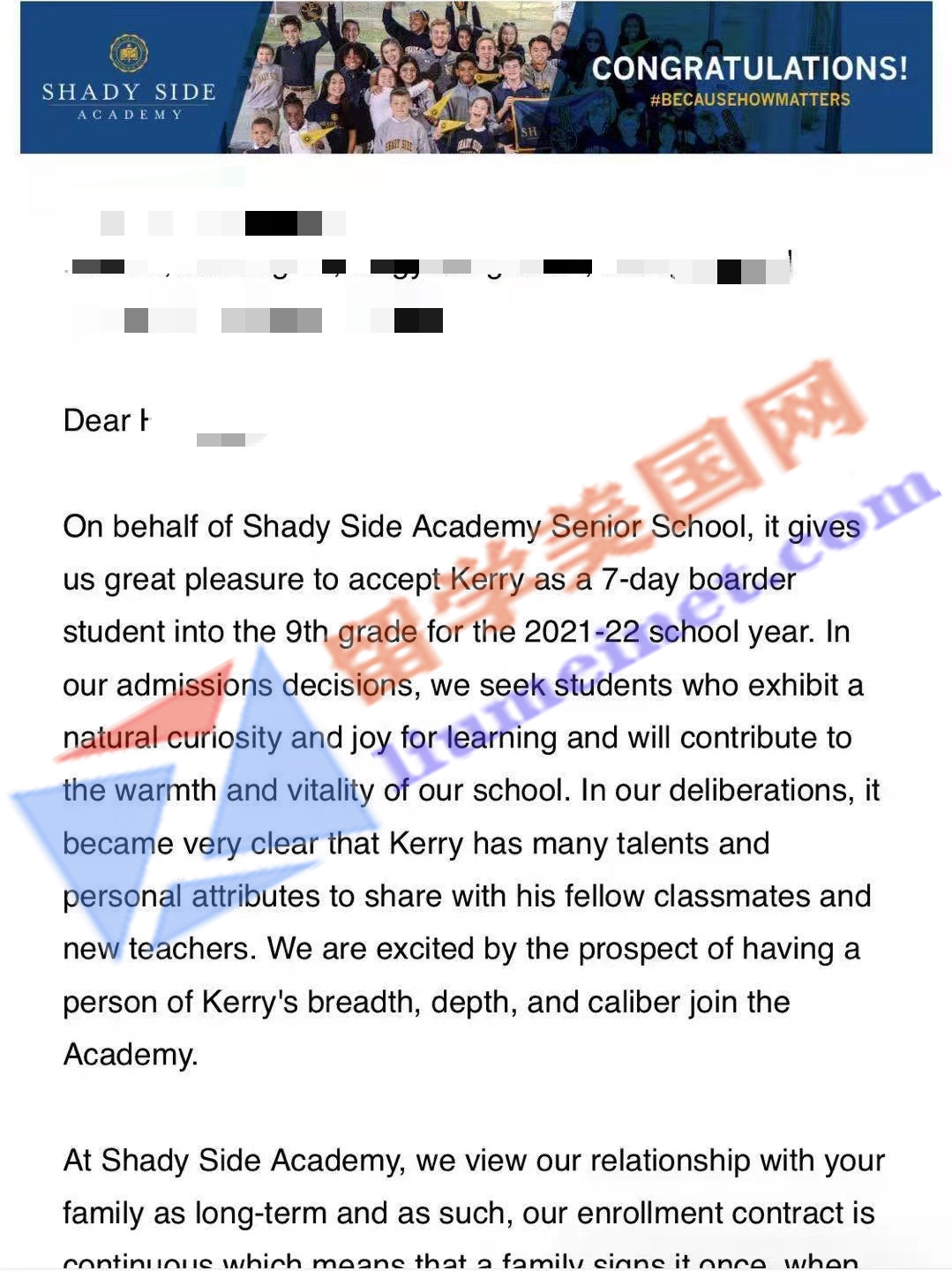 恭喜留美网L同学补录到宾州排名第一的顶尖寄宿学校Shady Side Academy!