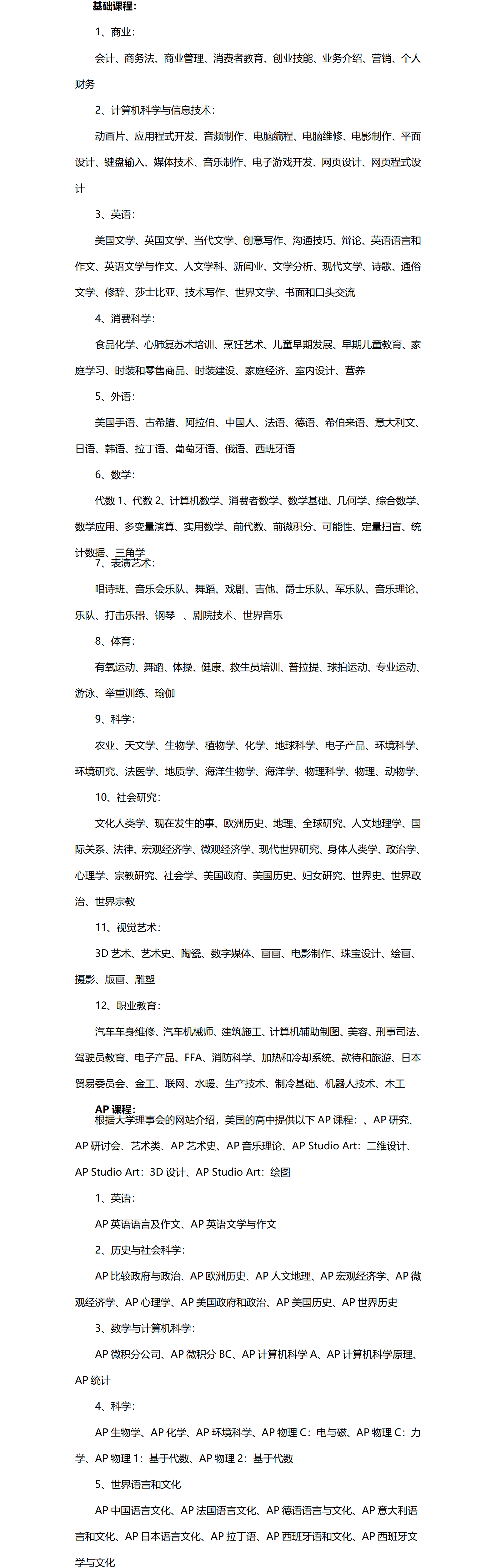 美国的高中课程有哪些?