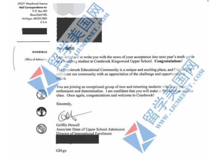 录取捷报 | 恭喜留美网Jay同学斩获美国顶尖寄宿高中克瑞布鲁克中学Cranbrook Schools的录取offer~