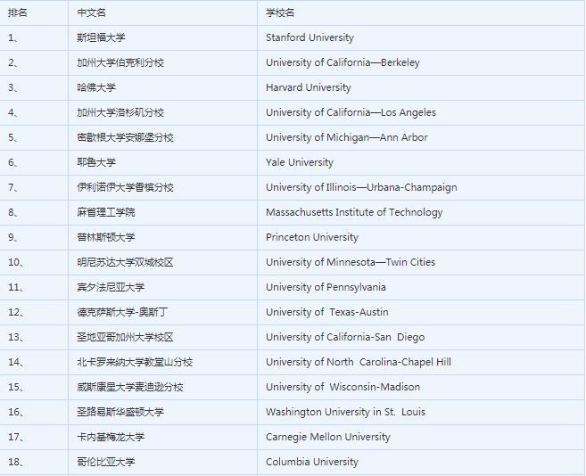 美国心理学院校排名: