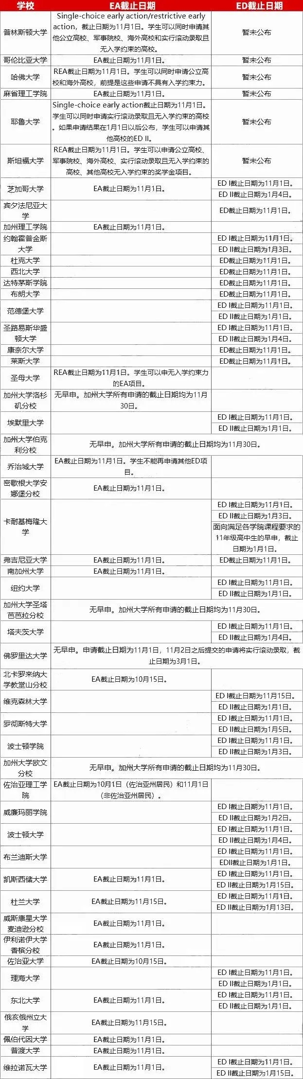 EA-Early Action,可以申请多所学校,非绑定,录取之后可以选择不入读,录取后在5月1日之前答复学校即可。提供EA的学校主要有:麻省理工学院,加州理工学院,弗吉尼亚大学,密歇根大学安娜堡,北卡罗莱纳大学教堂山,佐治亚理工,伊利诺伊大学香槟,威斯康辛大学麦迪逊,宾州州立大学,俄亥俄州立大学哥伦布等。