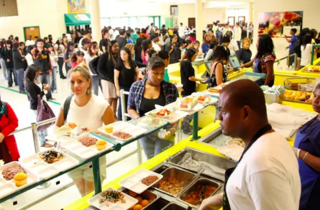美国高中生中午都在学校吃饭,学生可以买饭,也可以带饭。无论是买还是带饭,午饭时间是高中生搞社交的黄金时段。