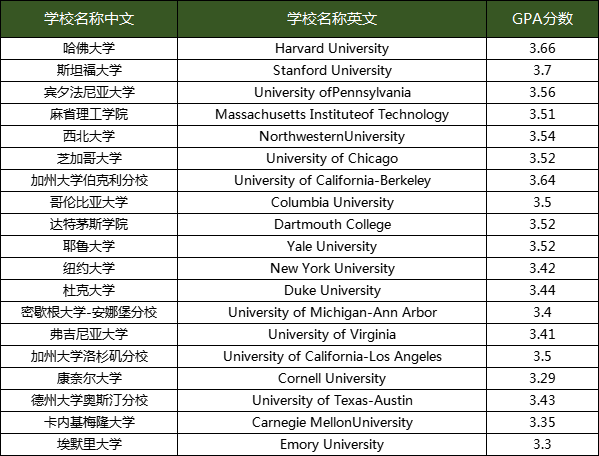 虽然很多学校在招生简章中并未给出特别明确的GPA要求,但是通过录取的平均分我们可以看到学校对于GPA的要求在哪个层次,所以学生的GPA成绩也从侧面可以反映学生在申请中的竞争力以及被录取的可能性。因为GPA是反应学生的学习能力的一种基准,而每所美国大学对于gpa的要求不同,但大体上还是存在一定的标准,以下是顶级大学的gpa平均要求,仅供参考: