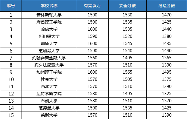 美国TOP15大学本科申请SAT要求