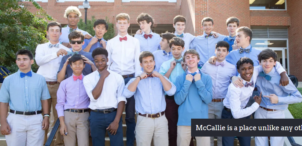 麦卡利中学位于田纳西州第三大城市Chattanooga,附近有Baylor School,是美国最优秀的基督教男子学校之一,有完善的学生管理和荣誉体系,提供优质的大学预备教育,学校与女子预备学校有合作关系,提供各科大学先修课程,强调教师的指导和友谊是麦卡利经验中最重要的部分,毕业生走向好。