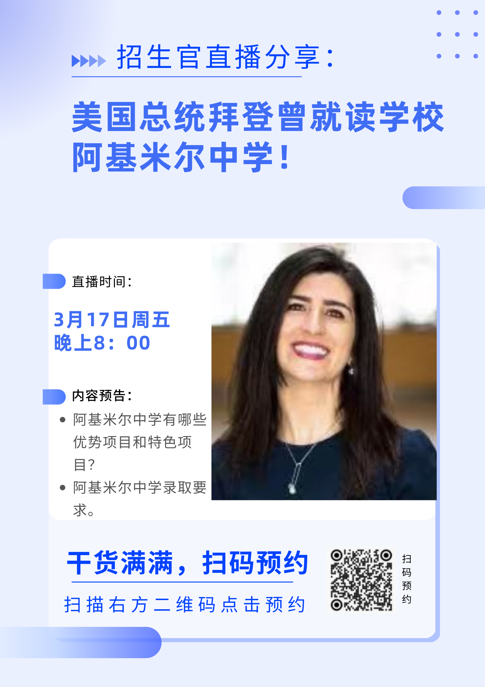 美国总统拜登曾就读学校阿基米尔中学招生官直播!