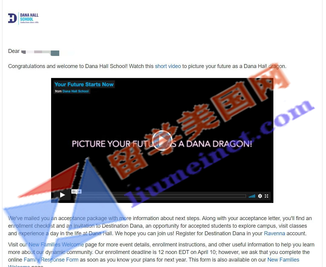 我们留美网有也曾喜获Dana Hall School学校的录取offer!