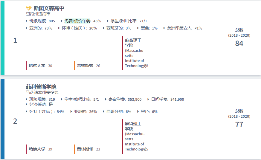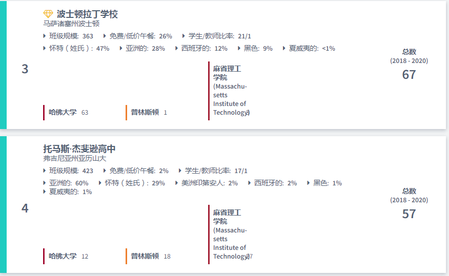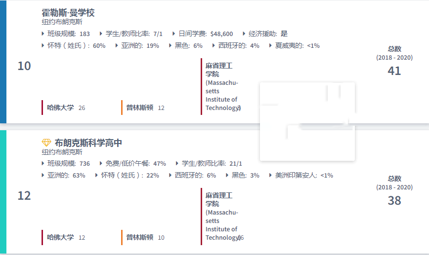美国最好的高中排名:哈佛、普林斯顿和麻省理工学院2020录取人数