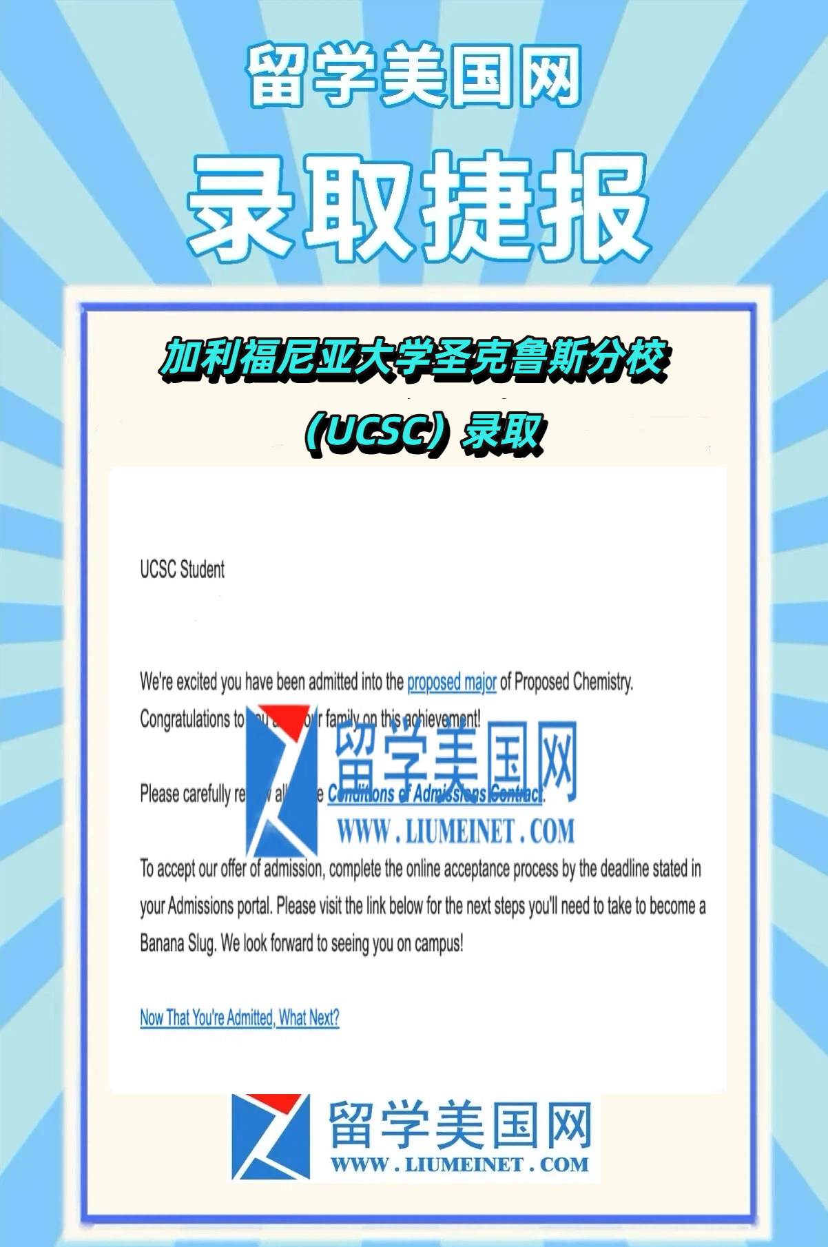 迈润肯再传录取捷报!恭喜迈润肯留学斩获顶尖走读高中观点中学和UCSC录取~在此,衷心感谢每一位学员、家长与老师的全力以赴与辛勤付出! 观点中学: 观点学校位于加州卡拉巴萨斯,强调卓越和成就并提供个性化关注。有恒温游泳池,最先进田径训练设施,马尔科姆家庭美术馆,机器人实验室,黑匣子剧院,400个座位的卡尔森家庭剧院,创新空间等等。 课程设置丰富,学术突出。开设29门AP课程,28门荣誉课程,10门高级课程和6门加速课程满足不同程度学生学术需要。2020年毕业生获得重大奖学金,芝加哥大学奥德赛奖学金,南加大总统和院长奖学金,欧伯林音乐学院院长奖学金,UC伯克利校长奖学金等。 ECOLET户外公共空间:为所有从小学科学到AP生物学学生创建,用于研究本地植物和野生动植物。 理工科突出,设施先进:最近机器人实验室进行翻新,配有机器人技术竞技场,3D打印机,钻床和专业的工程设备等。 重视艺术:提供屡获殊荣管弦乐队和风合奏课程;提供戏剧、舞蹈表演、幕后工作等,还可演出秋季戏剧,春季音乐剧等;电影是最著名节目之一,电影IV是电影节目的结果,制作获奖电影,这些电影在全国电影节中都得到认可。 体育获得众多奖项,游泳突出,男子游泳2005年至2019年都获得联赛冠军、女子游泳也2007年至2019年都获得联赛冠军。 加利福尼亚大学圣克鲁斯分校University of California,Santa Cruz 加利福尼亚大学圣克鲁斯分校成立于 1965 年。它是加利福尼亚大学系统的十个校区之一,是一所世界顶尖的公立研究型大学134。学校位于加利福尼亚州圣克鲁兹市,距离旧金山南部约 75 英里,距离硅谷约 30 分钟车程。 校园占地 2001 英亩,坐落在海滨社区圣克鲁兹的边缘,可以俯瞰太平洋和蒙特利湾。校园环境优美,山峦起伏,林木葱郁,被《福布斯》评为世界最美丽的 14 所大学之一,在普林斯顿评论中被评为全美 “最绿色” 大学中第 7 名。 该校在全球大学排名中取得了不错的成绩,在一些研究领域具有较高的声誉。其在天文学、海洋科学、地球科学等领域的研究尤为突出。 优势专业:天文学与天体物理学、地球科学、计算机科学、社会学、环境科学、生物学等。 截止今日,迈润肯已累计斩获14枚录取offers!更多录取结果仍在持续更新中,敬请期待! 留美网24小时热线:15011066813 专家热线:13910531929 微信公众号:liumeinet(迈润肯高中留学) 顾问微信:liumeinet2014