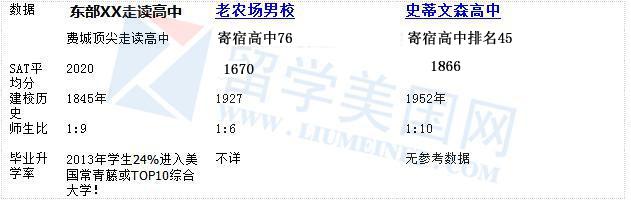 下面是 东部XX顶尖走读高中与老农场男校、史蒂文森高中数据的对比,这个表单很直观,三所学校根本不在一个档次: