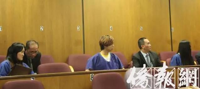 翟芸瑶斜着旁听席中的受害者家属(侨报记者高睿摄)