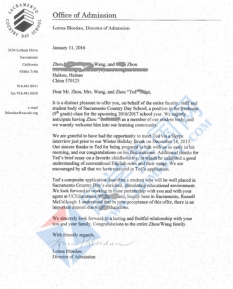 2、恭喜ZSY同学获加州首府最牛中学--萨克拉门托中学录取!