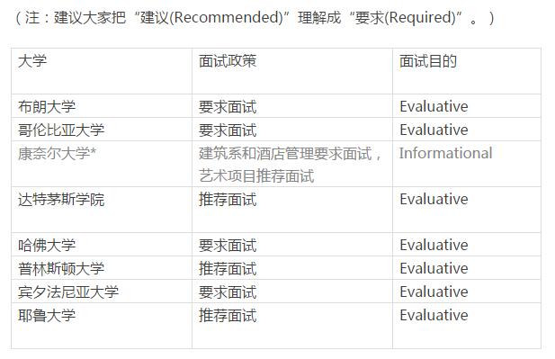 只有康奈尔(除了建筑专业、艺术系和酒店管理系),是唯一对面试作不硬性要求的藤校。其他都是要求或者建议。