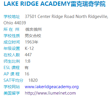 雷克瑞奇学院建于1963年,是克利夫兰西部最好的独立贵族学校。该校无论从硬件、资源、学术、艺术各方面看都绝对是美国一流院校。能容纳几千人的93英亩超大校园学生规模却一直严格控制在400人左右,师生比仅有1:8,教职人员80%以上拥有硕士及博士学历。课堂全部是圆桌会议形式小班教学,每个学生都能更深入的参与课堂讨论,师生关系亦师亦友。该校拥有专业的STEAM(STEM+ART)研究中心。其中科学中心提供工程,医学及环境科学的相关课程。该中心硬件设施水平极高,拥有比肩甚至超过大学水平的化学实验室,包括镭射切割机、刻字机、3D打印机的双层工程实验室以及大型植物温室。其课程专业程度高,难度大,包括胚胎学,多变量微积分,大学离散数学等等,还有最能反应学生科研水平的大型仿生学研究项目并是美国大湖区仿生学协会会员。此外该中心还提供科研所专业文凭,参与项目的学生要进行为期2年的独立课题研究,研究过程会与该领域的专业教授及研究员合作。今年的学生研究课题涉及细菌转化,睡眠对哺乳动物认识记忆的影响,音乐与阿尔茨海默症,芦苇的生长与管理等话题。该中心还与克利夫兰医院及NASA合作为学生提供独特的课程体验及实习机会。除了科学中心以外,该校还拥有专业的艺术学院,该中心的戏剧项目属于非常严谨的斯坦尼斯拉夫斯基体系话剧,学院提供高级表演课,古典戏剧艺术,现代戏剧艺术,戏剧舞蹈,导演,即兴创作表演及踢踏舞几大专业戏剧舞蹈分支课程。并有托尼奖获奖者,百老汇专业演员,美剧导演,现代舞编舞导演亲自与学生互动进行艺术沟通。学校内还有专业的黑匣子剧院供学生使用,所以他们的戏剧非常专业,每年出产2部戏剧并在中学届的托尼奖中获得多项专业奖项提名。该校还有非常强势的课外项目,比如全美排名第13位的模拟法庭,俄亥俄区域赛第一的模拟联合国,乐高机器人竞赛俄亥俄第一的机器人社团,有NASA工程师指导的火箭社团及专业的校办电视台。该校的升学导师是原大学招生官,有超过10000个升学案例经验,从9年级开始为每位学生规划升学前景。各方面的专业化综合运营使该校学生的学术水平非常突出,全校SAT平均高达1820,每年都能产生代表美国前0.57%水平的国家荣誉学者获得者,升学率100%且100%都升入4年制大学且平均每年20%的学生升入常青藤联盟校!仅2016届毕业生70%都获得大学奖学金,人均超过12万美金,合计80万人民币!这所贵族学校为所有国际生提供1对1的美国的小伙伴,为学生融入当地生活提供最有效的过渡。