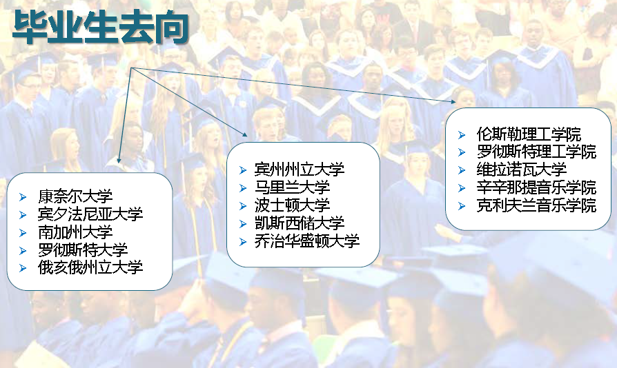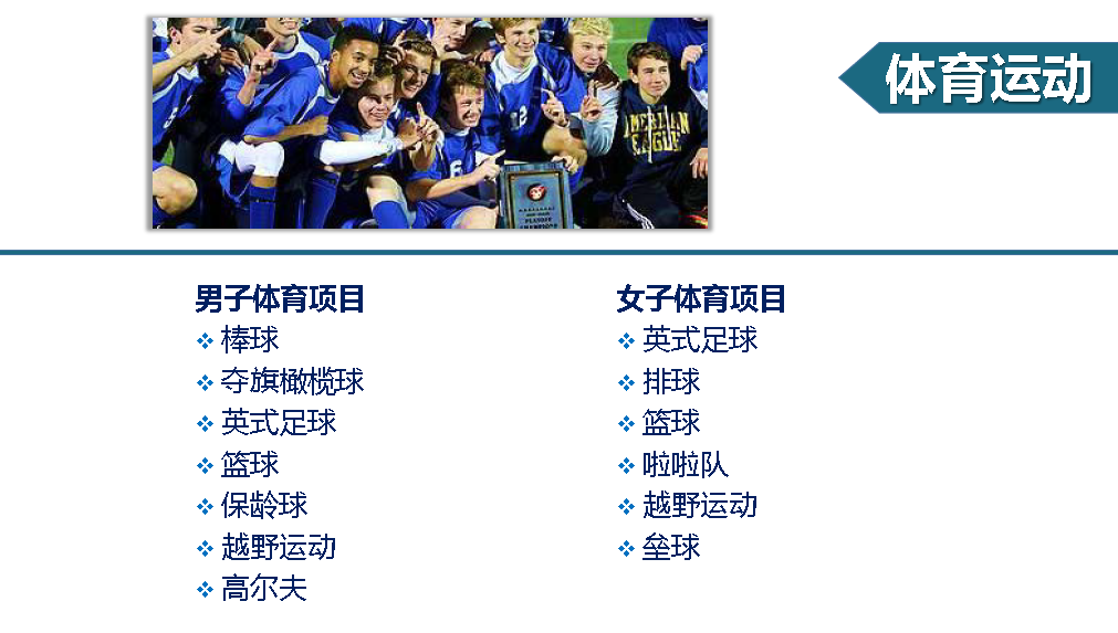 5、100%大学升学率,录取院校有康奈尔大学、西点军校、乔治华盛顿大学、理海大学、芝加