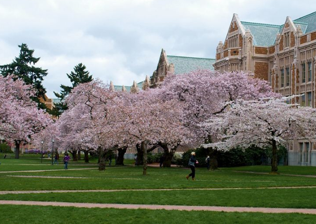 华盛顿大学创建于1861年,拥有150年历史,坐落在华盛顿州西雅图市,是一所世界顶尖的著名大学,华盛顿大学教授队伍包括:208位美国院士,9位诺贝尔奖得主,26位美国总统奖得主,14位麦克阿瑟奖得主,一位菲尔兹奖得主。华盛顿大学拥有学生42,446人:大学部 27,647人、研究生院12,787人,研究生比例占30%,拥有500多个学生团体。在本科生和研究生中,国际学生比例均占15%。华盛顿大学每年都从全球范围录取一大批世界顶尖的优秀学生,在校学生中包括: 136名 Fulbright Scholars,35名 Rhodes Scholars, 7名 Marchall Scholars 和 4名 Gates Cambridge Scholars。华盛顿大学的班级设置适中,本科生班级平均人数为28人,一二年级每班30人,三四年级每班22人。