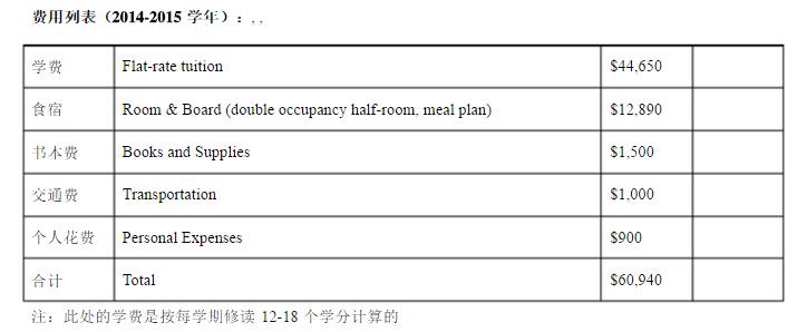 佩伯代因大学一年花费约6.1万美金(含学费、食宿、书本费等),国际学生无法申请Need-based奖学金,但提供有Merit-based奖学金。该奖学金只在录取后,方才由学校根据学生成绩发放,申请时是无需考虑奖学金申请的。